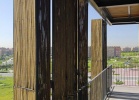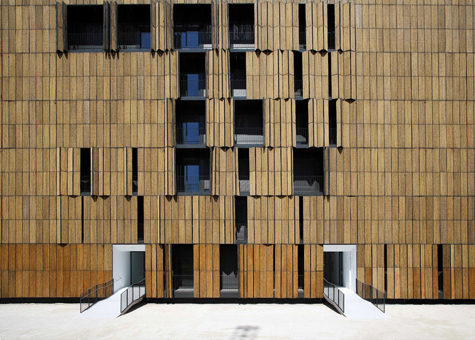 Façana de lamel·les de fusta plegables